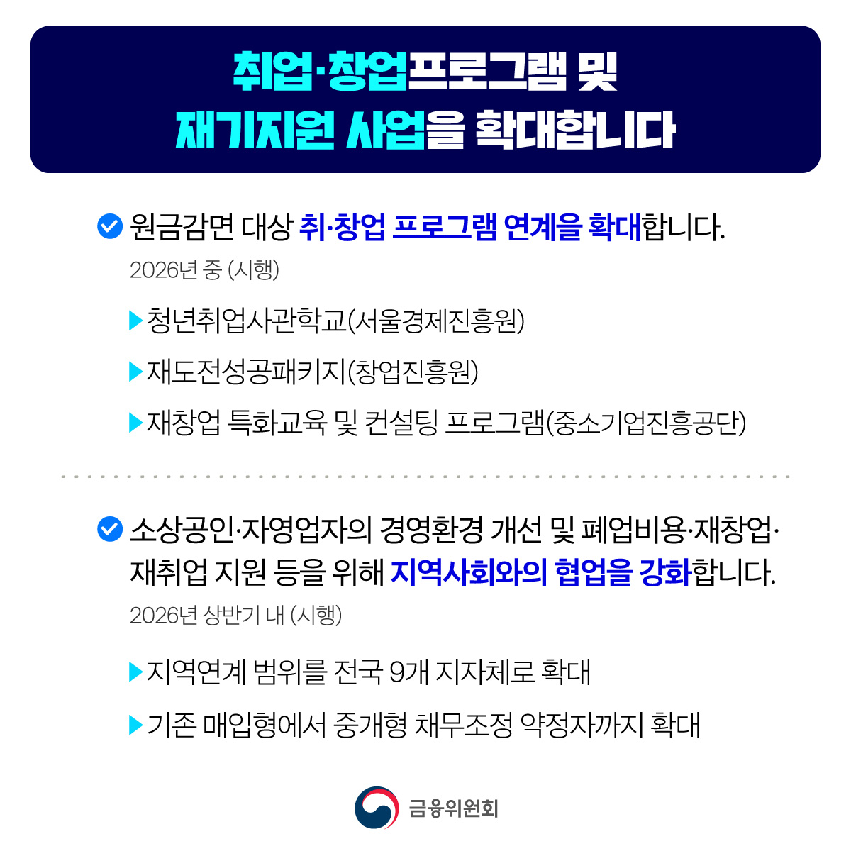 ✅취업·창업프로그램 및 재기지원 사업 확대