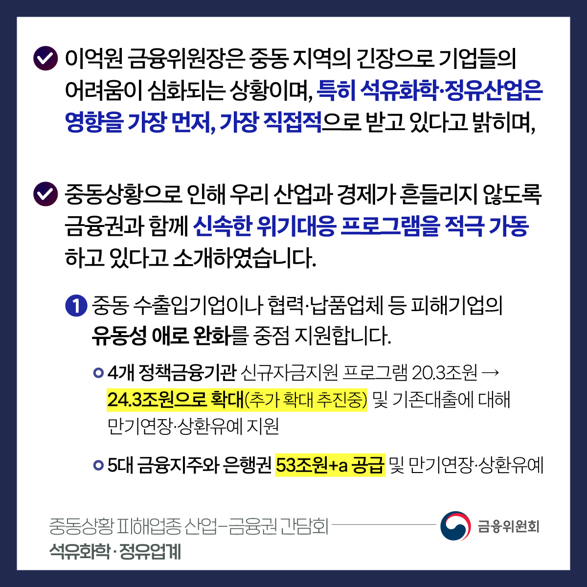 #금융위원회 #금융 #금융위 #금융정책 #금융당국 #중동상황 #석유화학 #정유업계