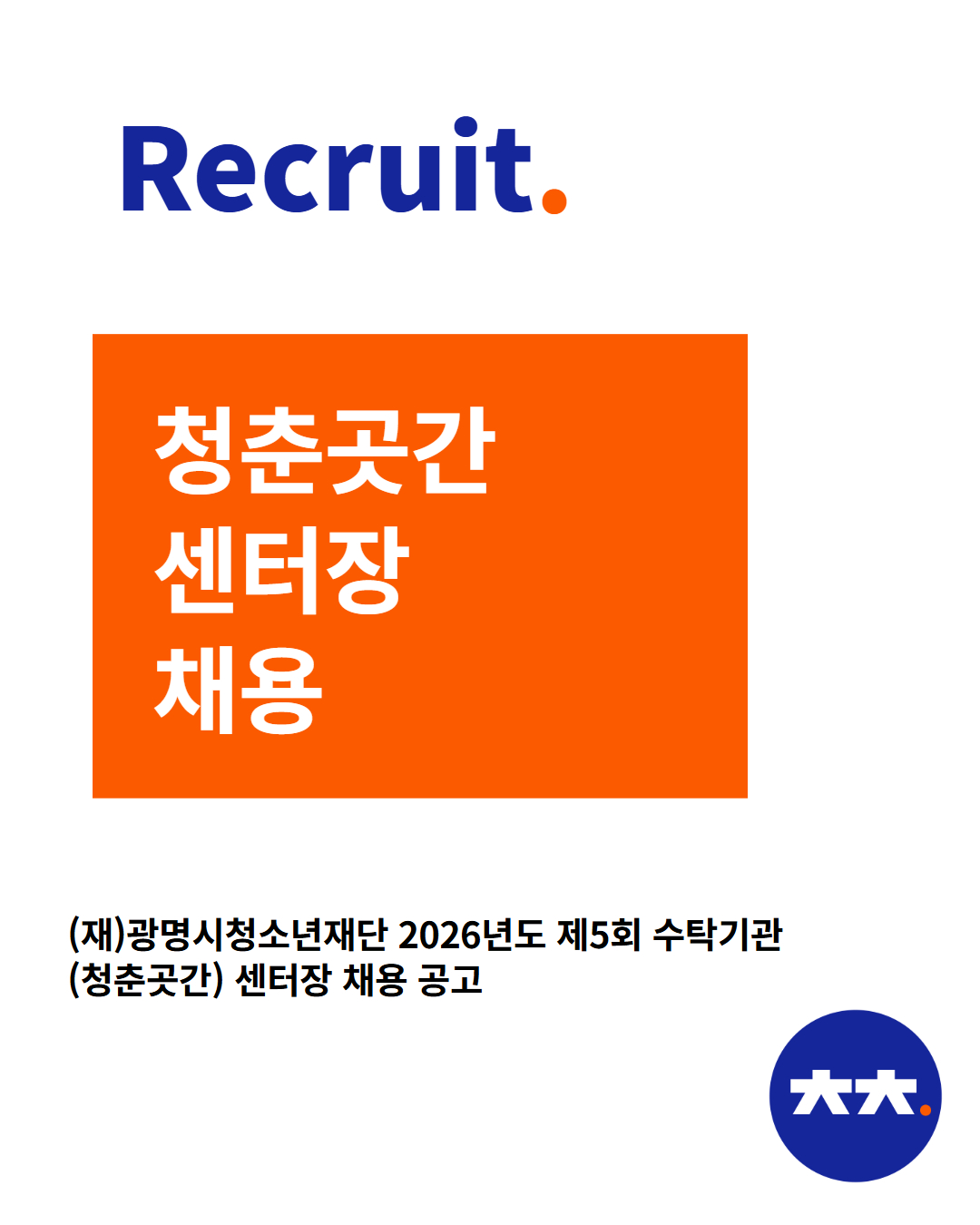 광명시청소년재단 2026년도 제5회 수탁기관(청춘곳간) 센터장 채용계획 공고