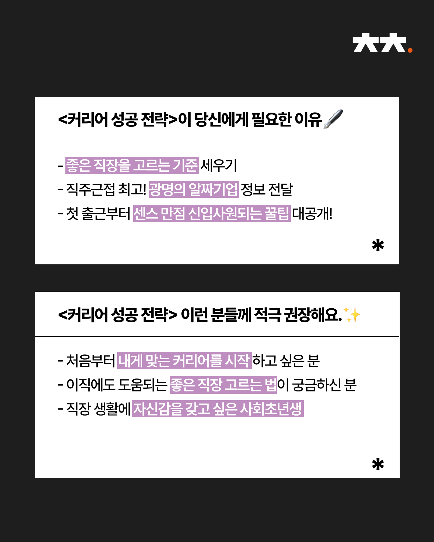 커리어로드맵 신입ver. '커리어 성공 전략 : 좋은 기업 찾기 & 첫 출근 생존법'