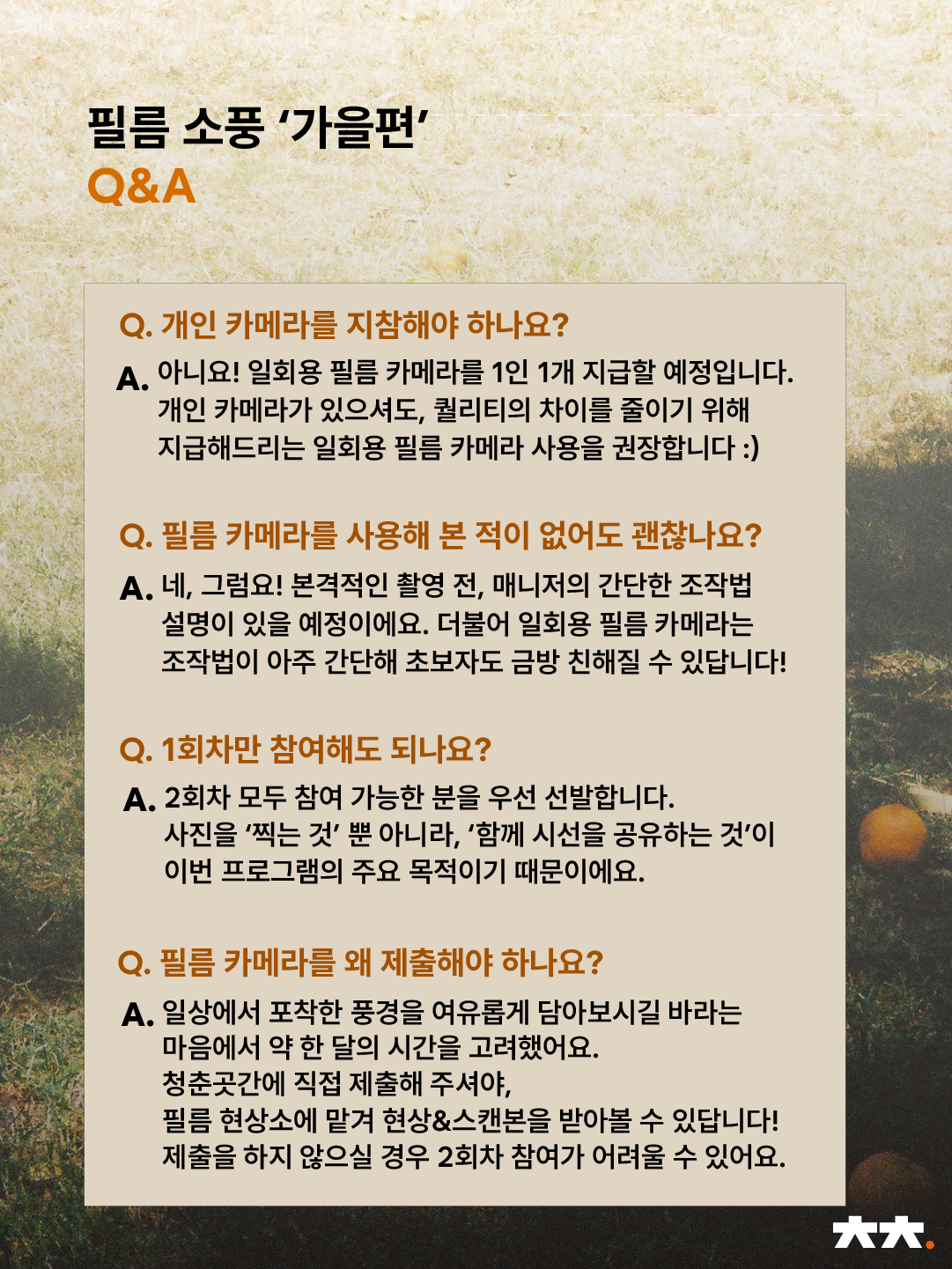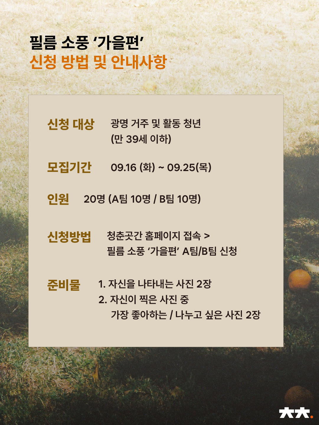 커넥트곳간 <필름소풍> '가을편' A팀 참가자 모집