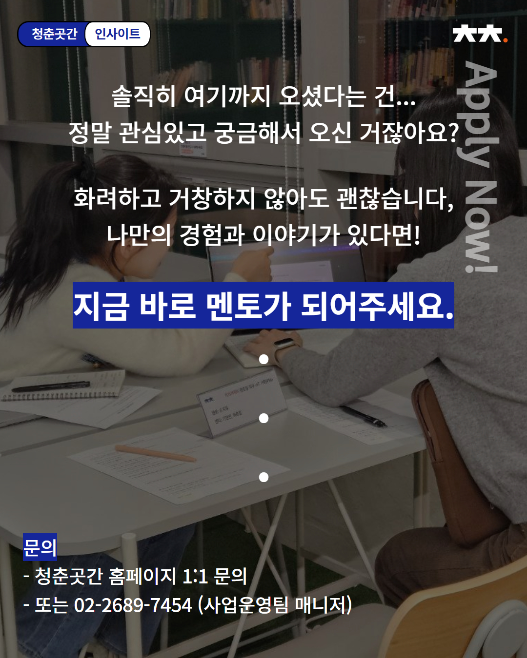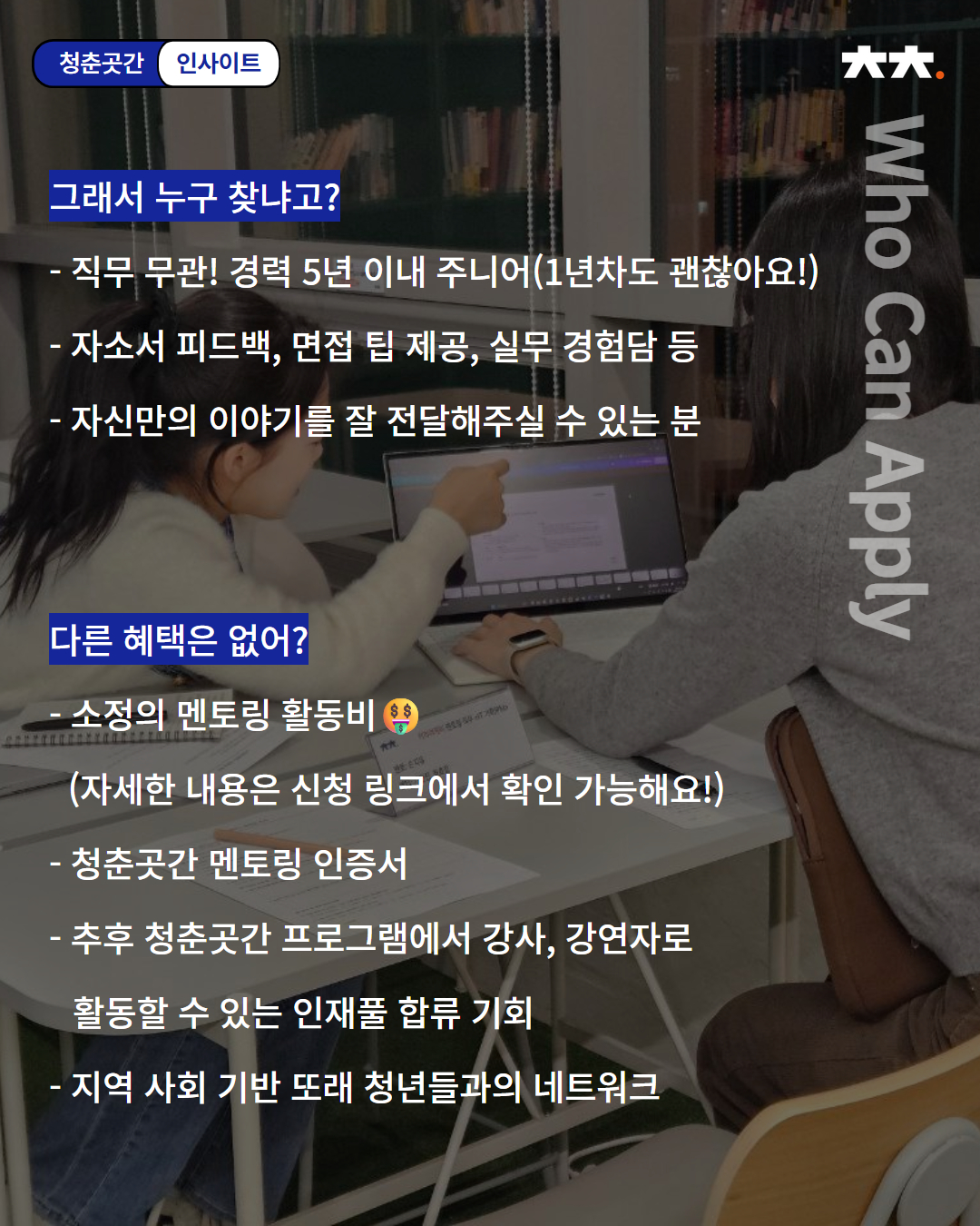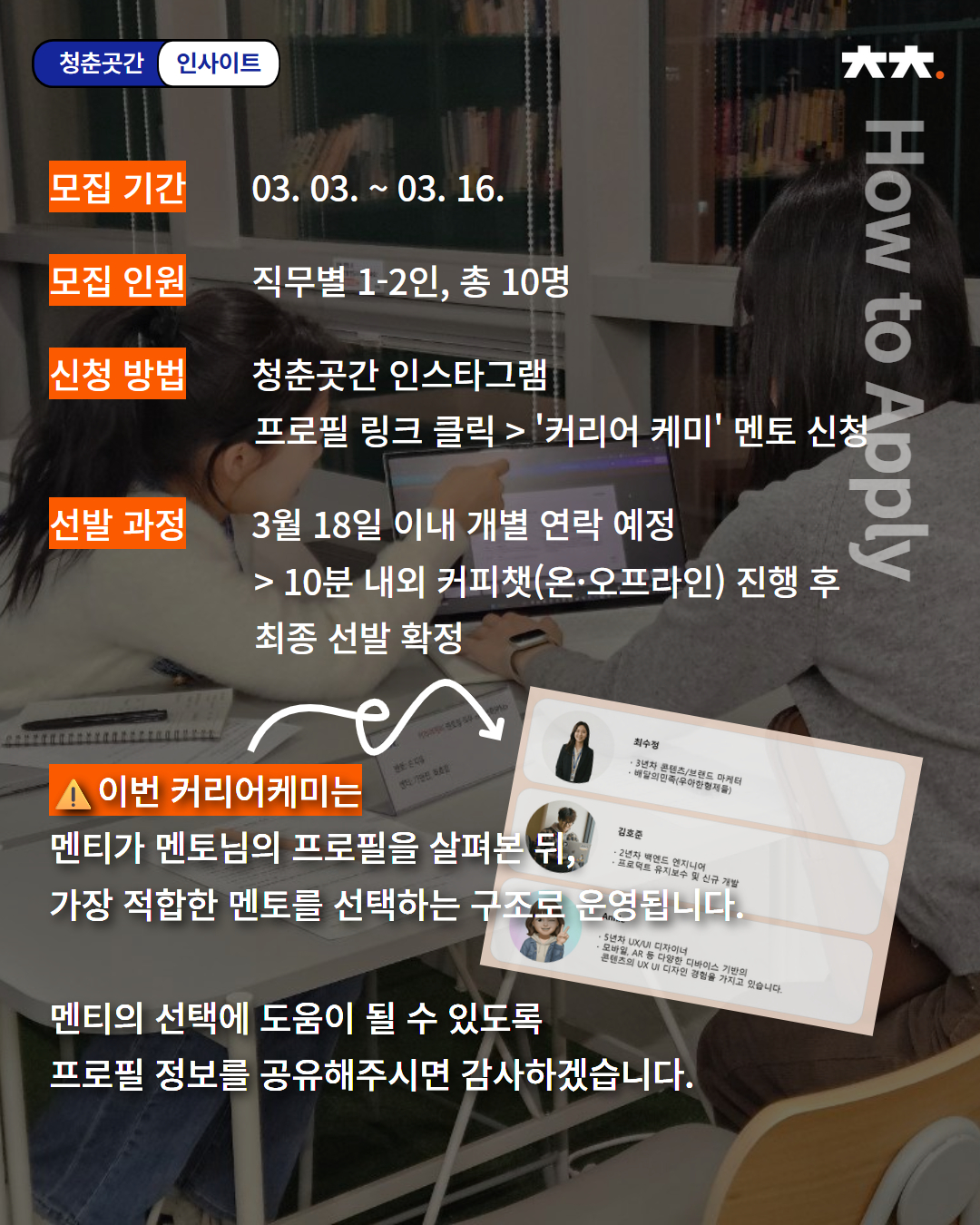 '커리어케미' 멘토 모집 (클릭 후 하단의 링크를 통해 신청해주세요)