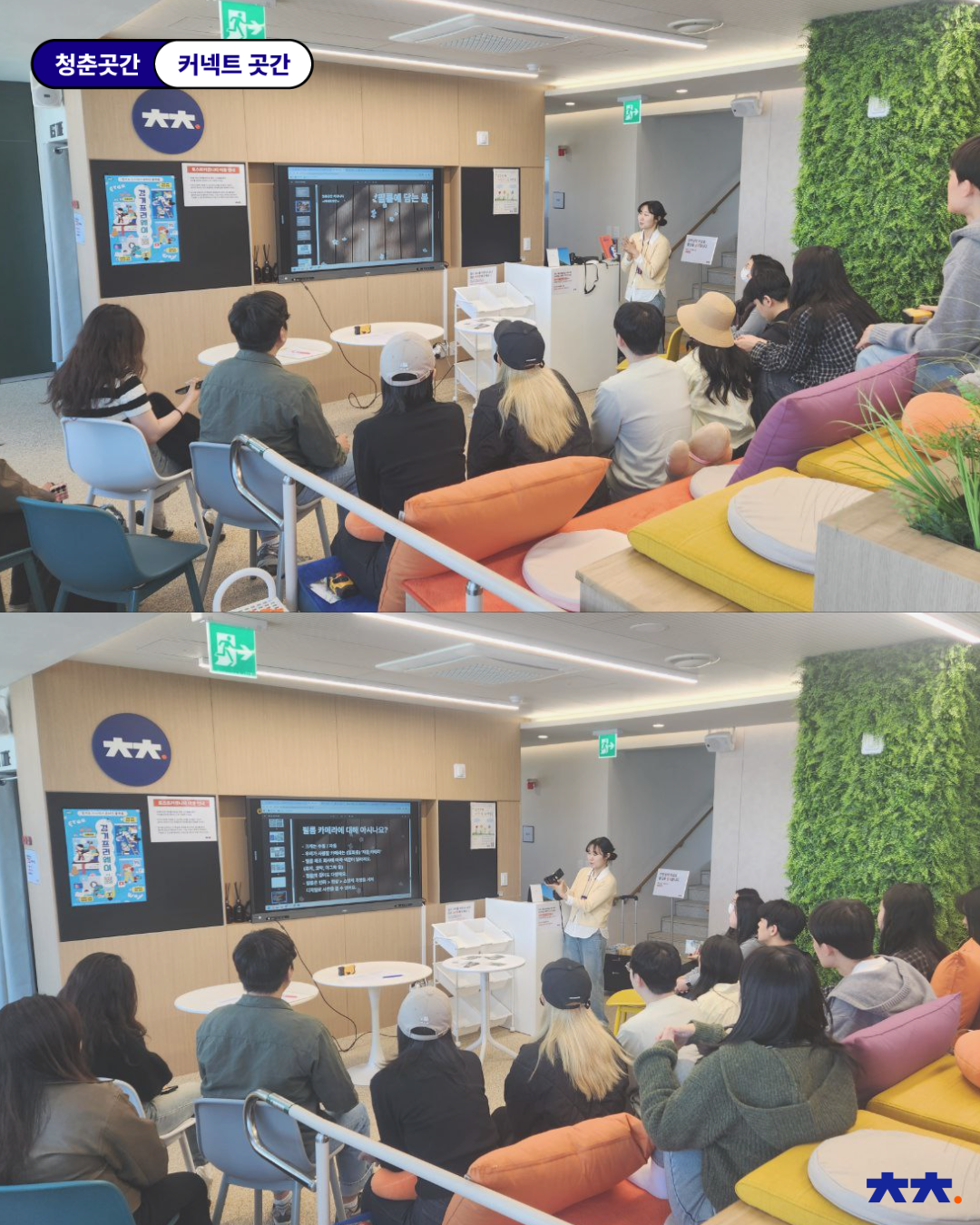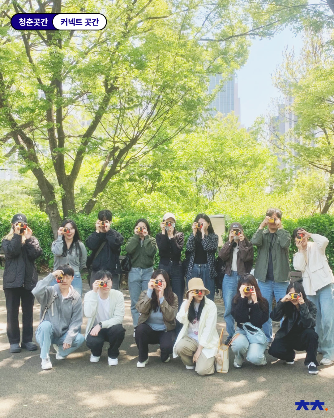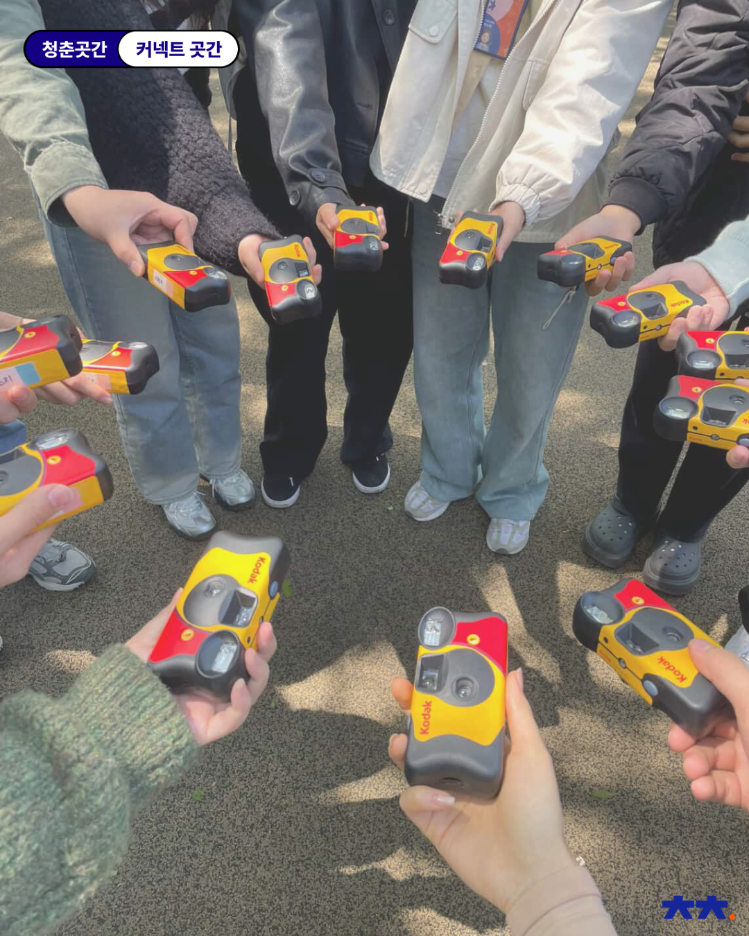 : ‘필름에 담는 봄’은 총 2회차로 진행되었는데요! 1회차는 필름 카메라에 대한 기초 지식 소개로 시작했어요. 이어서 ‘자신을 나타내는 사진 3장’을 활용해 자기소개를 진행했습니다 :) 이후에는 일회용 필름 카메라를 들고 밖으로 나가 직접 출사를 해보는 시간을 가졌어요. 하늘이 너무 맑고 기온도 딱 적당해서 모두가 행복한 봄 날씨를 즐겼던 기억이 나네요! 👐